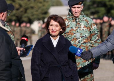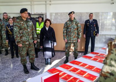 „Среќна сум што Новата година ја започнувам со вас! Ви посакувам добро здравје, посветеност и истрајност, зашто само со труд, надграден со љубов кон професијата, се создаваат перфектни војници“, порача претседателката.