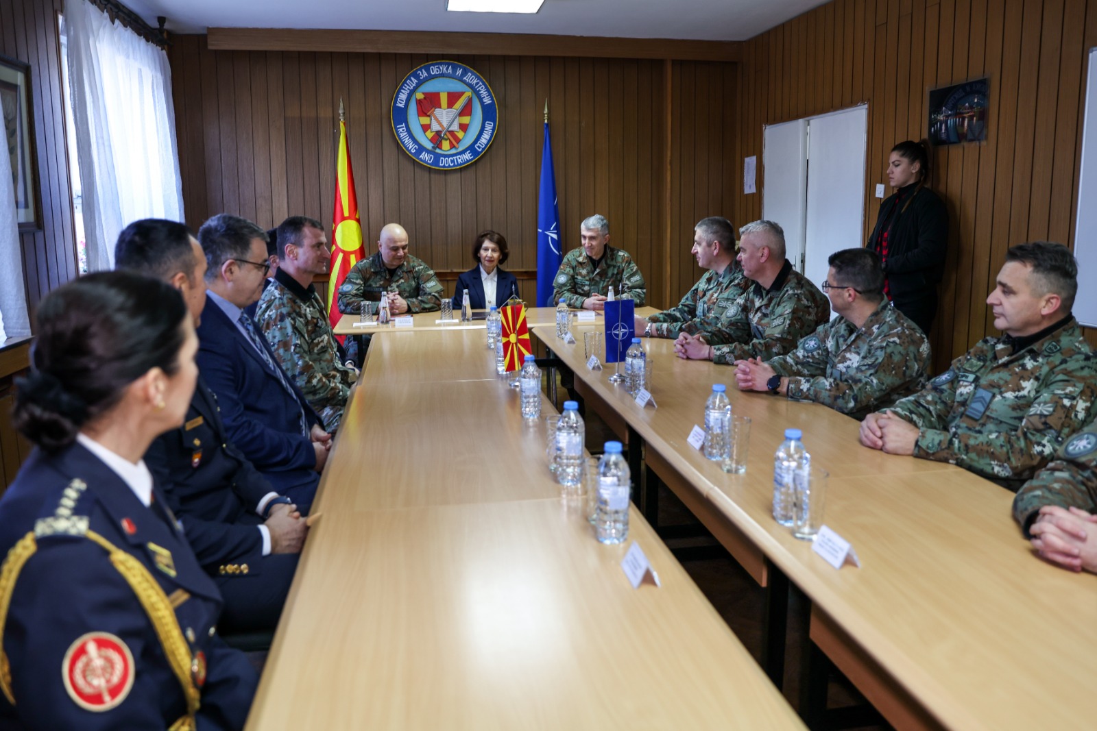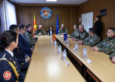 Во текот на посетата, претседателката беше брифирана за мисијата и капацитетите на Командата за обука и доктрини. Таа присуствуваше на презентација во Центарот за симулации, каде што беше прикажана ефикасноста во изработката на правила, упатства и научени лекции, како и на презентација на Центарот за обука и дресура на службени кучиња.
