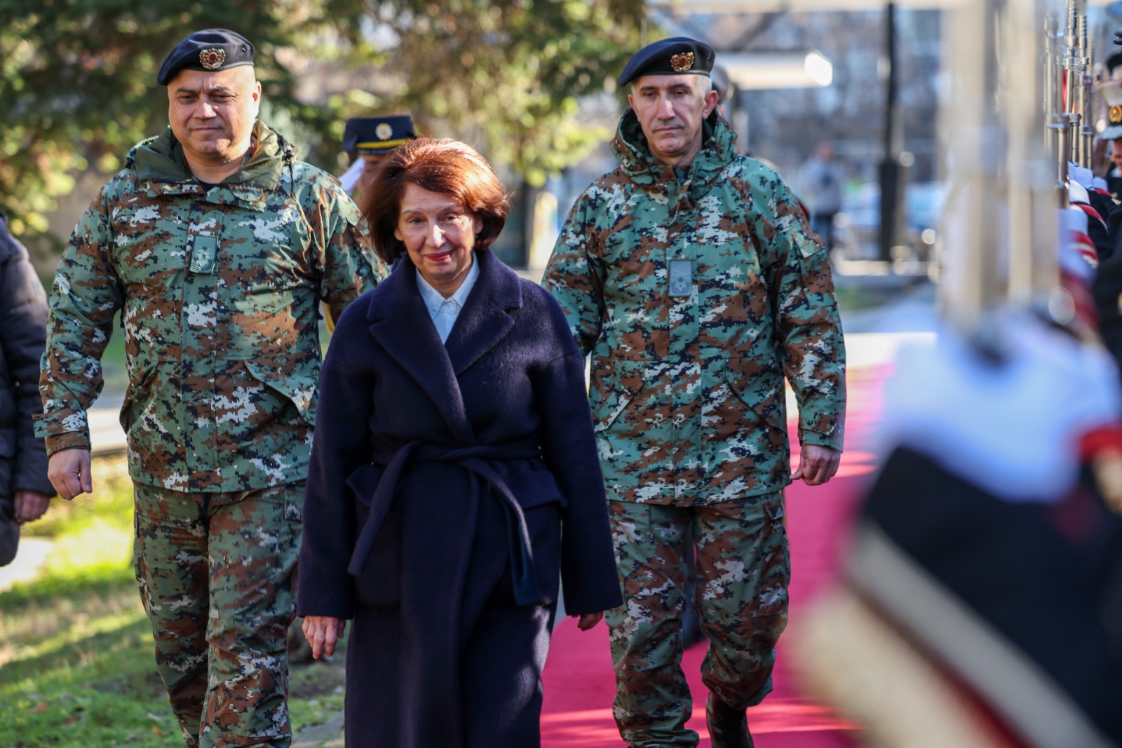 Во духот на обновената традиција, претседателката Гордана Сиљановска-Давкова првиот ден од Новата 2026 година го помина со припадниците на Армијата во касарната „Алексо Демниевски – Бауман“ во Велес, придружувана од началникот на Генералштабот, генерал-потполковник Сашко Лафчиски.