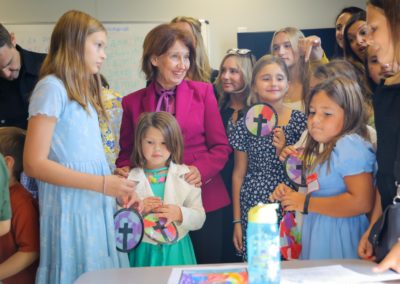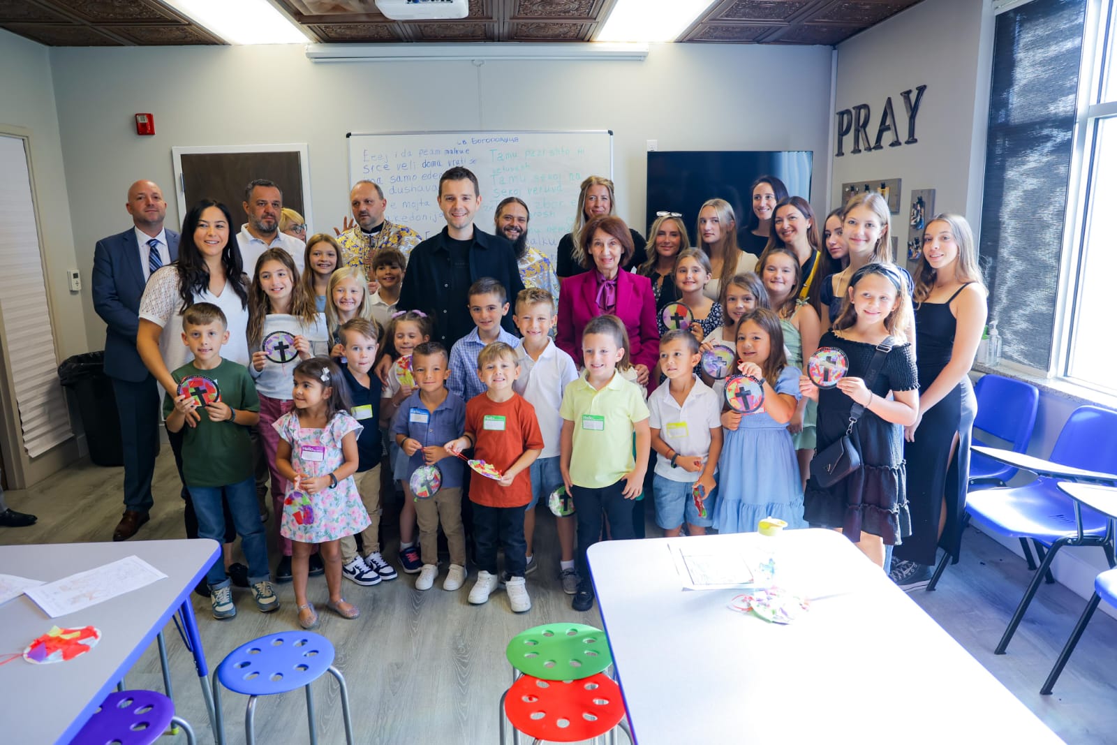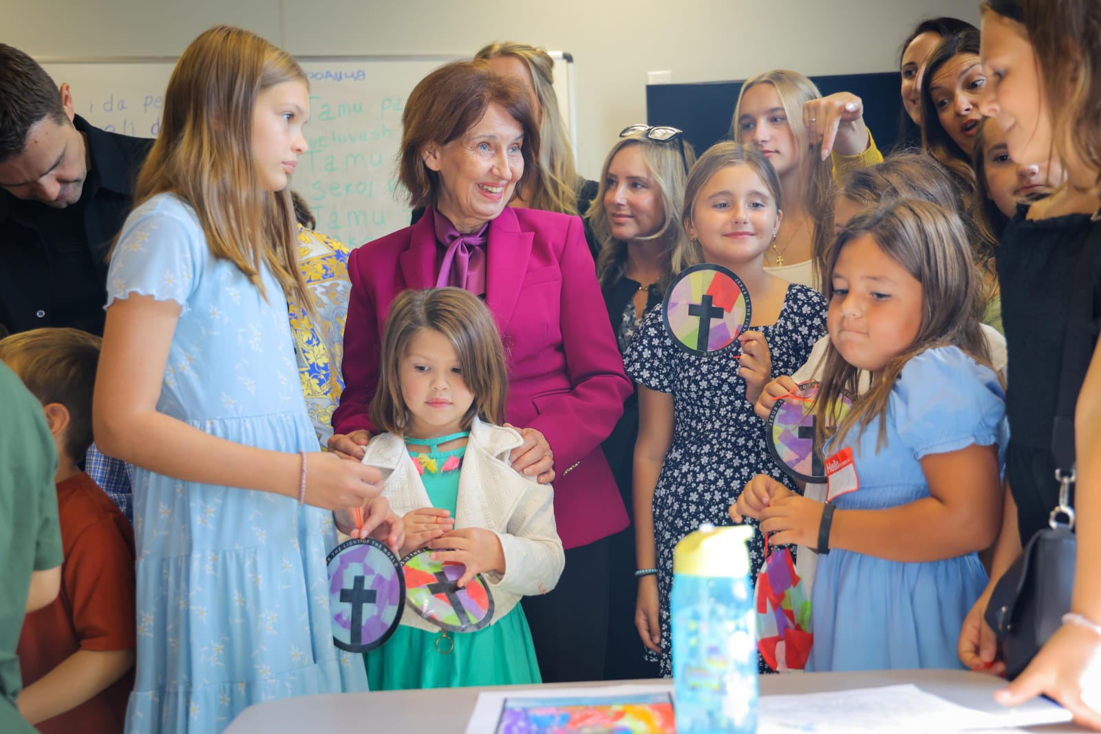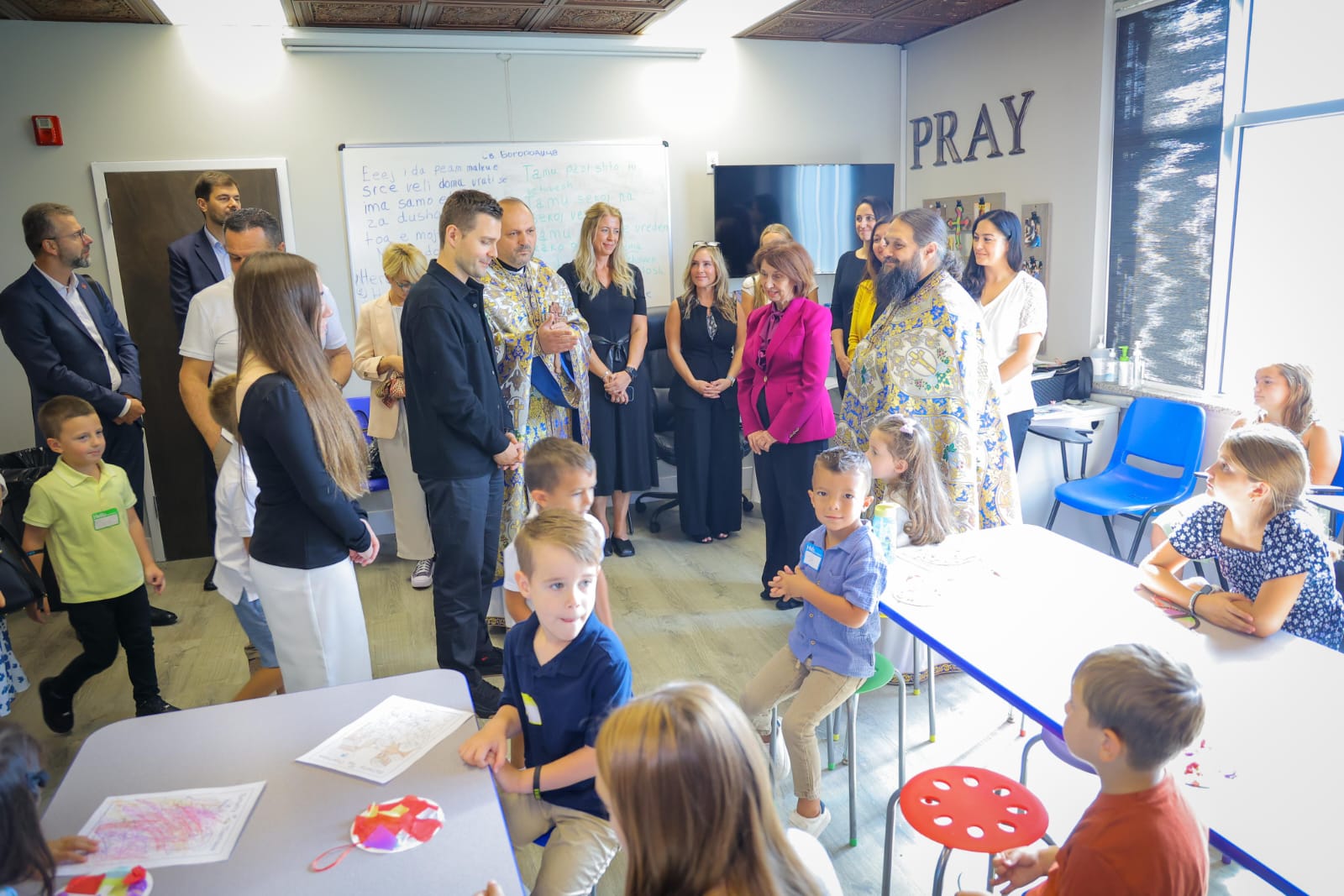 Presidentja Siljanovska Davkova vizitoi gjithashtu Shkollën e Kishës së së Dielës që vepron brenda kishës, ku rreth 120 fëmijë maqedonas kanë mundësinë të mësojnë rreth fesë ortodokse, traditës maqedonase dhe të mësojnë gjuhën maqedonase.