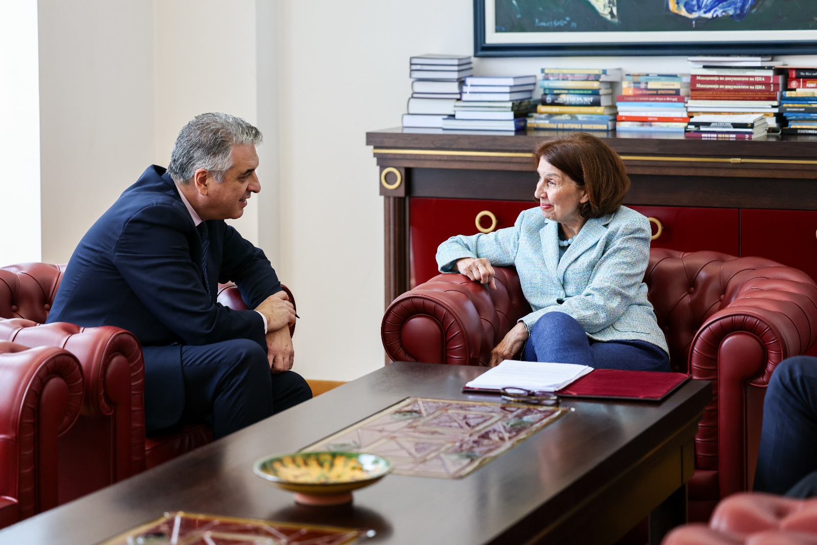 Претседателката Гордана Сиљановска-Давкова денеска го прими грчкиот професор Јанис Армаколас, директор на Програмата за Југоисточна Европа во Грчката фондација за европска и надворешна политика (ЕЛИАМЕП) и на иницијативата „Тhink nea – Нови наративи за интеграција во ЕУ“.