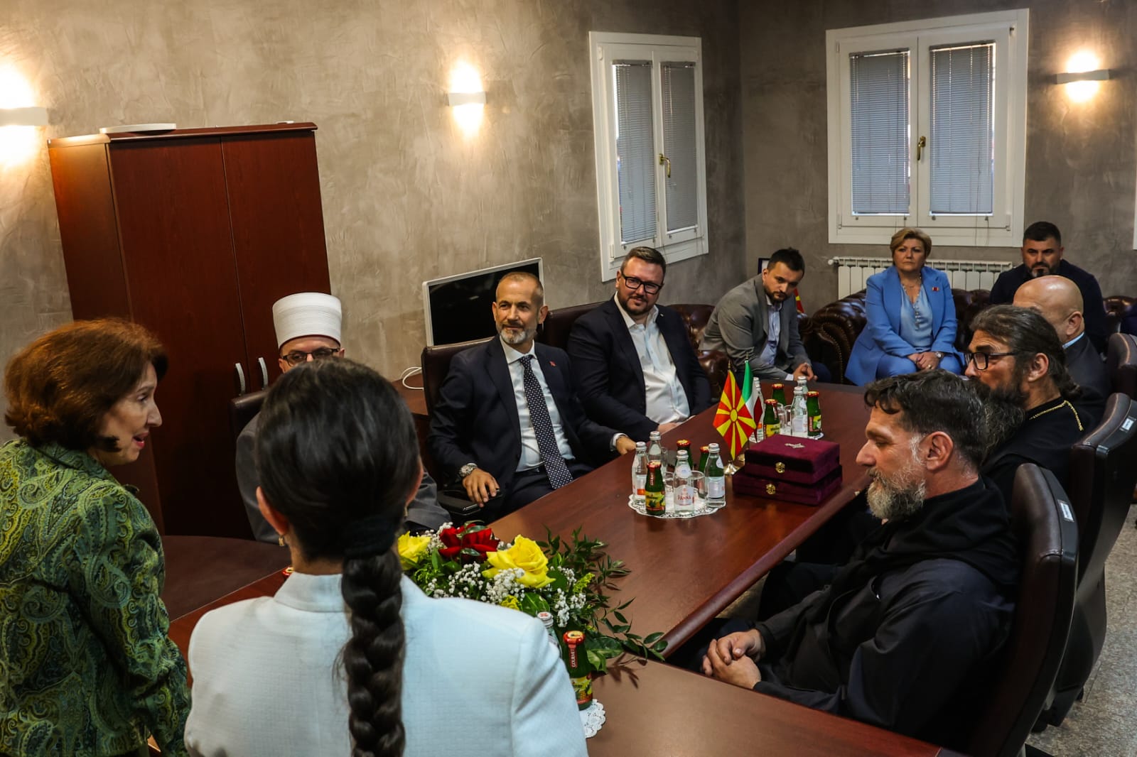 На сенародната средба претходеше разговор на претседателката со претставници на македонските здруженија и на црковните општини на Македонската православна црква – Охридска архиепископија и на Исламската верска заедница.