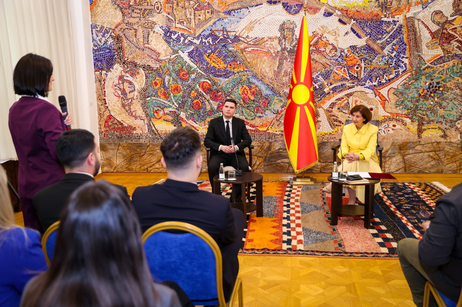 Во панел-дискусијата, европските демократски студенти се вклучија со низа прашања и коментари, меѓу кои и следниве: „Како прва жена претседателка, како би нè советувала, нас, критички настроените млади да влијаеме врз зголемувањето на бројот и учеството на жените во креирањето на политики на сите нивоа? Кои се македонските приоритети во безбедносната политика и како ќе ги остварите? Колку е тешко да се промовира и одржи граѓанското единство во мултиетничко општество, како македонското?“.