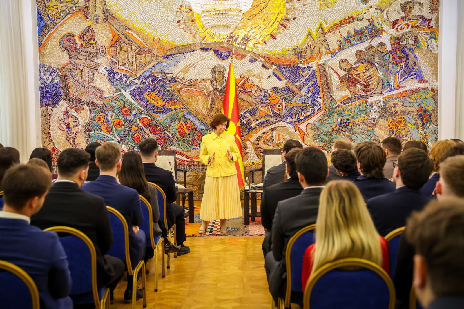 Претседателката д-р Гордана Сиљановска-Давкова со воведен говор ја отвори панел-дискусијата на Европските демократски студенти (ЕДС), учесници на Зимскиот универзитет на ЕДС 2026, што годинава се одржува во Скопје.