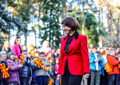 In the Presidential Cabinet, today, 270 children from the Skopje primary schools “Vera Jocic”, “Lazo Angelovski” and “Dimitar Makedonski”, as well as from the kindergartens “Buba Mara” and “LILIPUT DVORCHE”, attended the ceremonial change of the national flag.