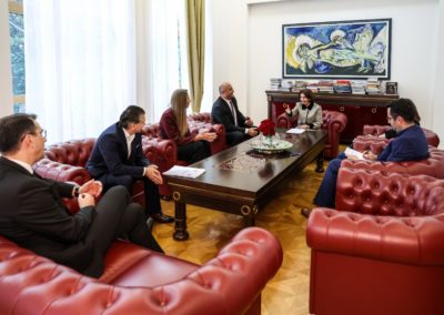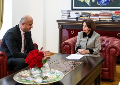 За таа цел, деканот на факултетот, Влатко Неделковски, продеканката за настава, Андријана Мисовски и професорите Иван Анастасовски и Серјожа Гонтарев ја запознаа претседателката со предлог проектот, односно со планираните истражувања и временската рамка во којашто ќе се одвиваат (2026-2028), очекуваните резултати и стратешката одржливост.