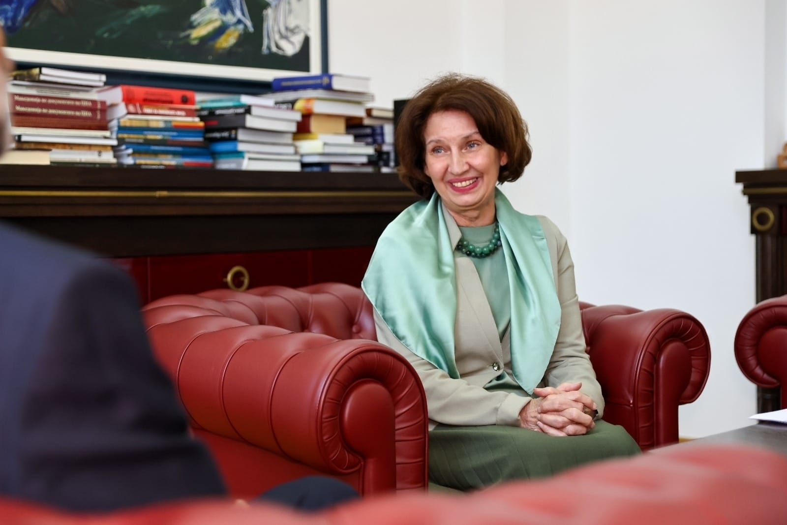 Таа особено се радува на потпишаниот договор за стипендии на студенти од Правниот факултет „Јустинијан Први“, нејзината матична институција, како охрабрувачки за најдобрите студенти, но и оние со лоша материјална положба и неопходна потреба од финансиска помош.