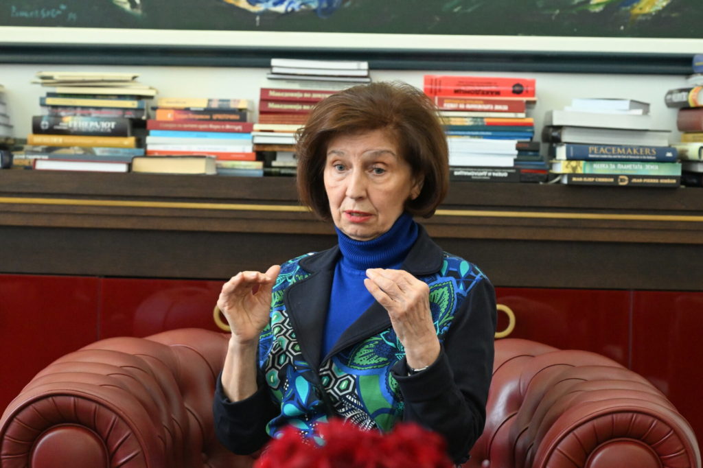 Јас сум спремна за разговор. Не ги претставувам граѓаните врз основа на етничка или партиска припадност. Напротив, ги претставувам како граѓани. Спремна сум да разговарам со сите, спремна сум да помогнам. Иако, да бидам искрена, знаете колку пати сум критикувала лидерски средби, посочувајќи дека тие можат да ги ослабат институциите, а да ги зајакнат партиските лидери. Но кога немате никаков контакт, и тоа е некаков чекор — особено кога станува збор за прашања што сите нè засегнуваат. Следното прашање е: што ќе биде следниот чекор? Да дојде некој однадвор и да ги седне сите? Тоа веќе е проблем. Бидејќи штом дозволувате некој однадвор да дојде, вие самите се делегитимирате. Тогаш тоа е слаба држава — да не речам и пропадната држава.