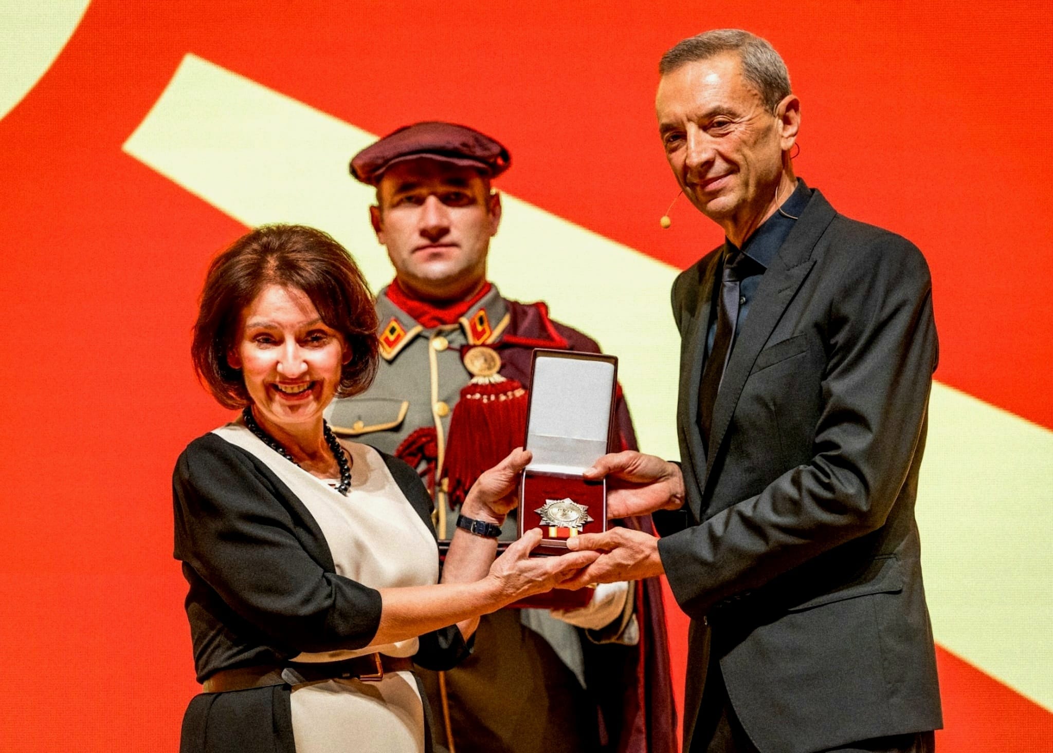 Овој ден, во присуство на неговите најблиски и најсакани, но и на соработниците, пријателите и почитувачите, како и на највисоките претставници на државата, имам особена привилегија да му го врачам Орденот „8 Септември“, како израз на длабока благодарност на македонската држава и на македонските граѓани.