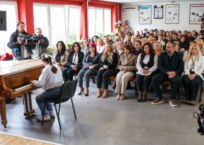 Благодарам Кристијан, благодарам на Советот на младите за ова исклучително задоволство да бидам овде. И на крајот, гледам многу мои соборки како седат овде. Тие знаат колку пати сум зборувала дека нема хендикепирани луѓе, има хендикепирано општество. Природата е совршен креатор, кога нешто ќе ви одземе, тогаш ќе развие нешто друго. Ете, тоа е таа идеална хармонија. Тоа е суштината заради која светот опстојува. Во тој свет има место за сите, без оглед на разликите, само што ние понекогаш несоодветно ги гледаме, а кога немате што да видите, не можете да го вреднувате и не можете соодветно да се однесувате. Јас мислам дека овој ден и овој настан се добра лекција за сите присутни и отсутни, не е важно. Овде има камери, овде има медиуми. Тие го видоа она што го кажа Кристијан, го чуја она што го кажа директорката и навистина мислам дека крајно време е од оваа држава да направиме пристојно место за сечиј живот.