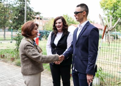 Би сакала да напоменам дека денешната посета на училиштето е желба, идеја и иницијатива на младите од Советот за млади, една од најдобрите. А, кога младите повикуваат, јас и ние сме должни не само да ги слушаме, туку и да им одговориме со должно внимание, со почит, но и со подадена рака за соработка заради разбирање. Јас ги чув, јас го чув Кристијан, јас ја чув претседателката на Советот на младите и тука сум не само заради нив, туку и заради сите вас и оние на кои им е потребен белиот стап, но и оние чиј живот е неразделен од првите.