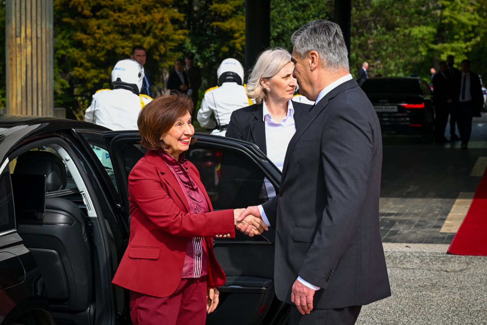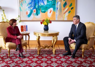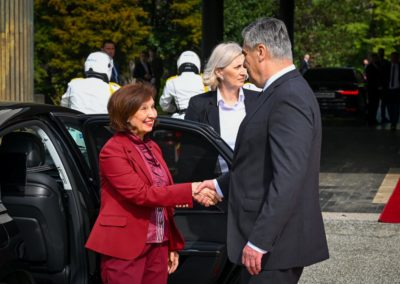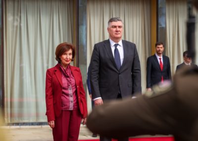 На официјална церемонија со највисоки државни и воени почести претседателката Гордана Сиљановска-Давкова денеска во Загреб беше пречекана од претседателот на Република Хрватска, Зоран Милановиќ, со што започна нејзината дводневна официјална посета на земјата.
