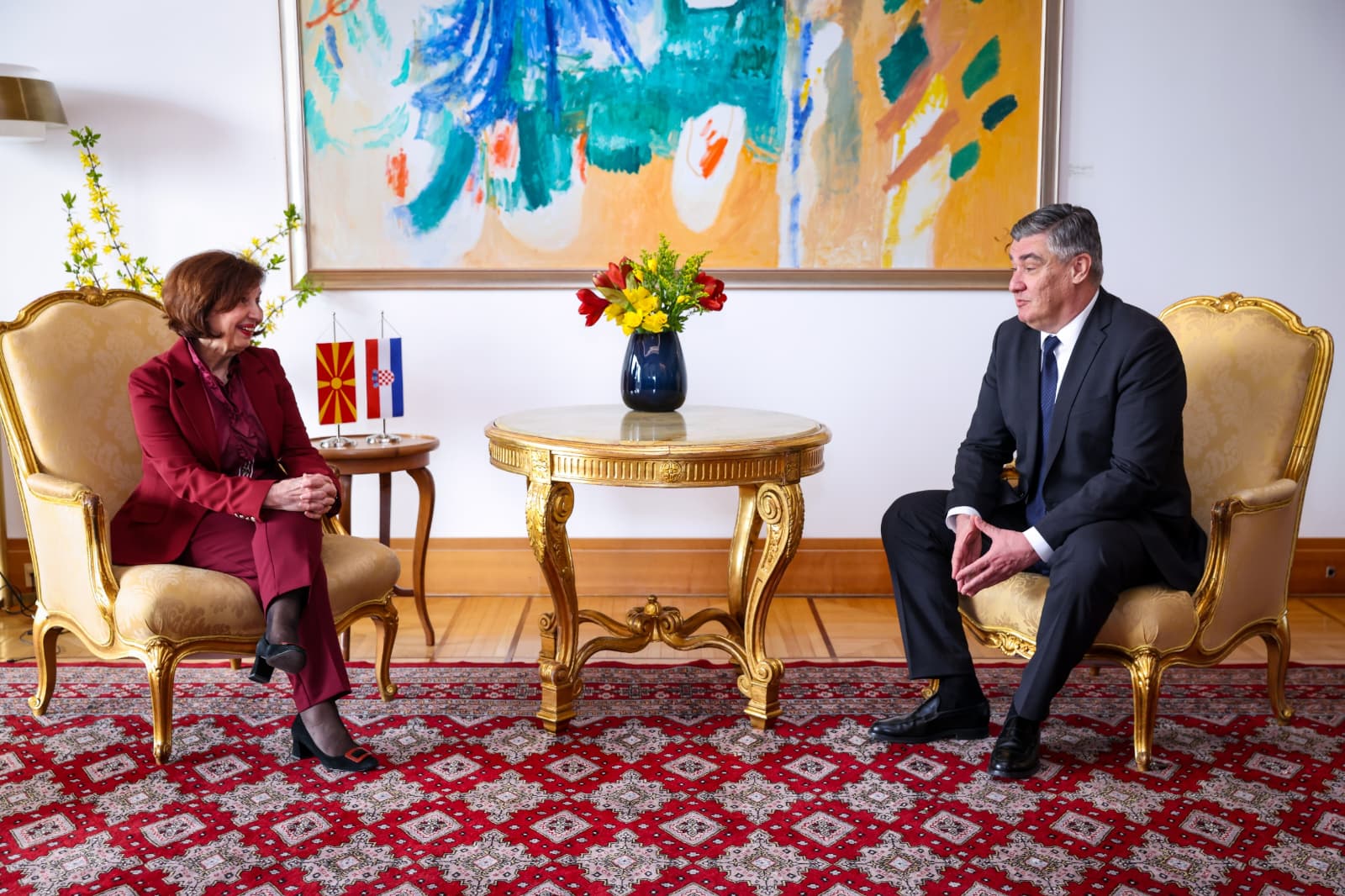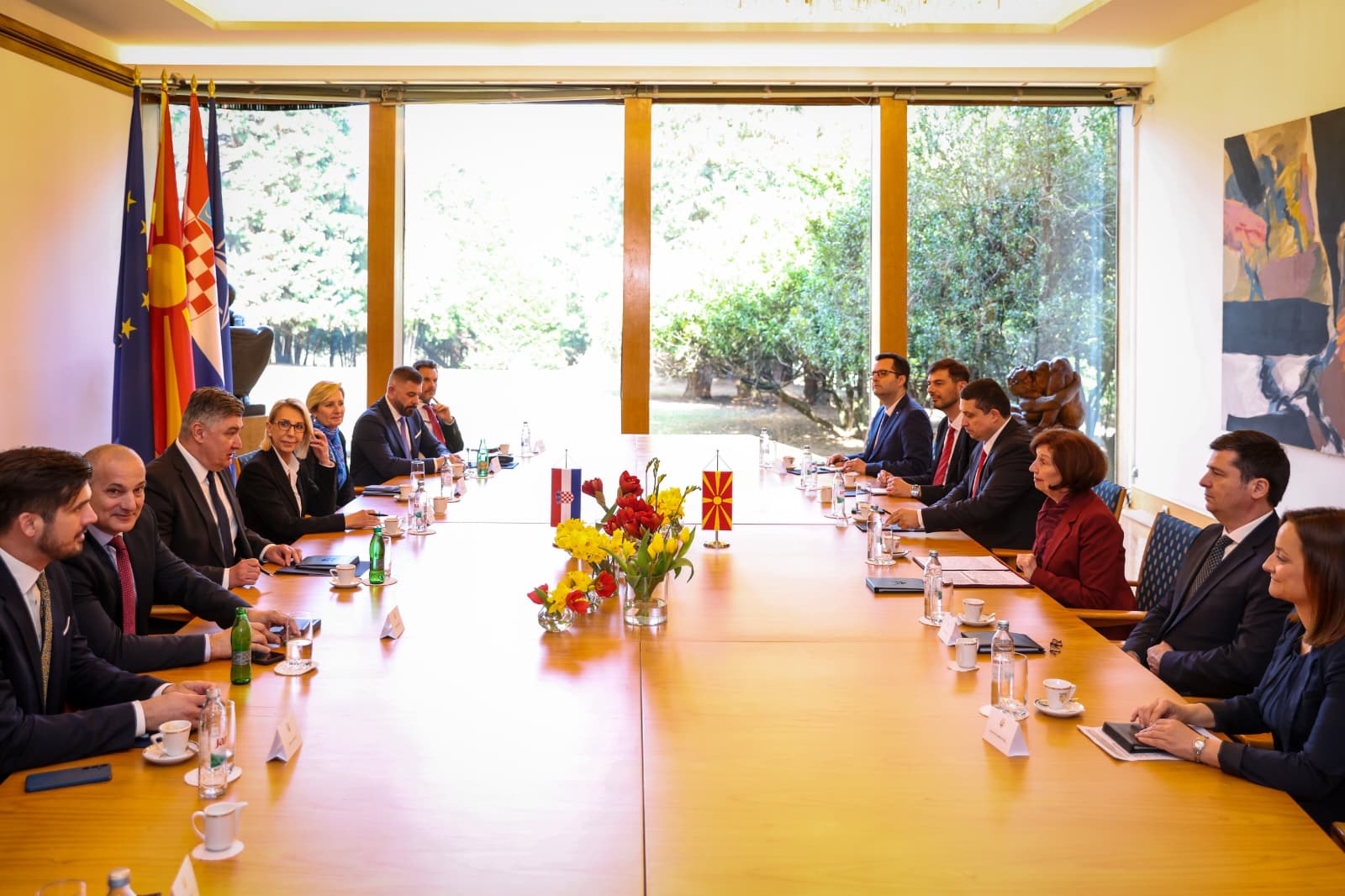 Двајцата претседатели одржаа тет-а-тет средба, по што следуваше пленарен состанок на македонската и хрватската делегација во чиј фокус беа традиционално пријателските билатерални односи.