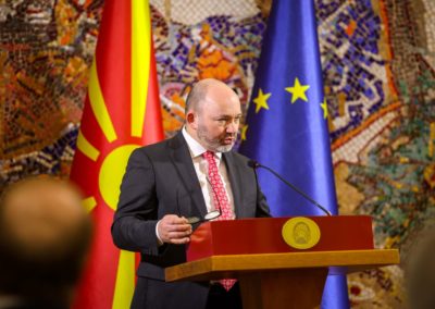 Денес, за жал, мојата земја сè уште е заложник на историски наративи и на идентитетски негирања што одат спротивно на европскиот дух. Околу нас како да се подига нова „Железна завеса“ од протоколи и од услови какви што не се барале од ниту една друга земја кандидат за членство, и коишто се спротивни на фундаменталните принципи и конститутивните документи на Европската Унија.