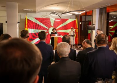 Доајенот на дипломатскиот кор, амбасадорот на Босна и Херцеговина, Драган Јаќимовиќ, во своето обраќање на приемот, во име на сите амбасадори изрази благодарност до претседателката за нејзината политика на отворени врати и континуирано пријателство со дипломатската заедница.
