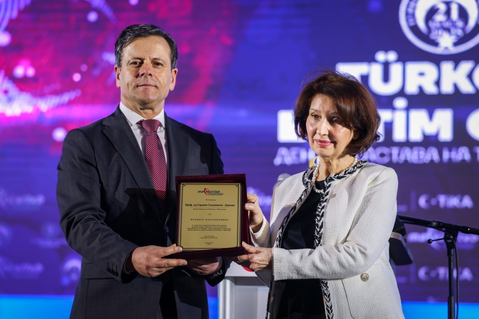 На настанот се обратија и: Фатих Улусој, турски амбасадор во земјава, Мустафа Шентоп, поранешен претседател на Големото национално собрание на Република Турција, како и организаторот на настанот, Тахсин Ибрахим, претседател на МАТУСИТЕБ, на кои, вклучувајќи ја и претседателката, им беа доделени признанија за истакнатата улога во градењето и зацврстувањето на турско-македонското пријателство.