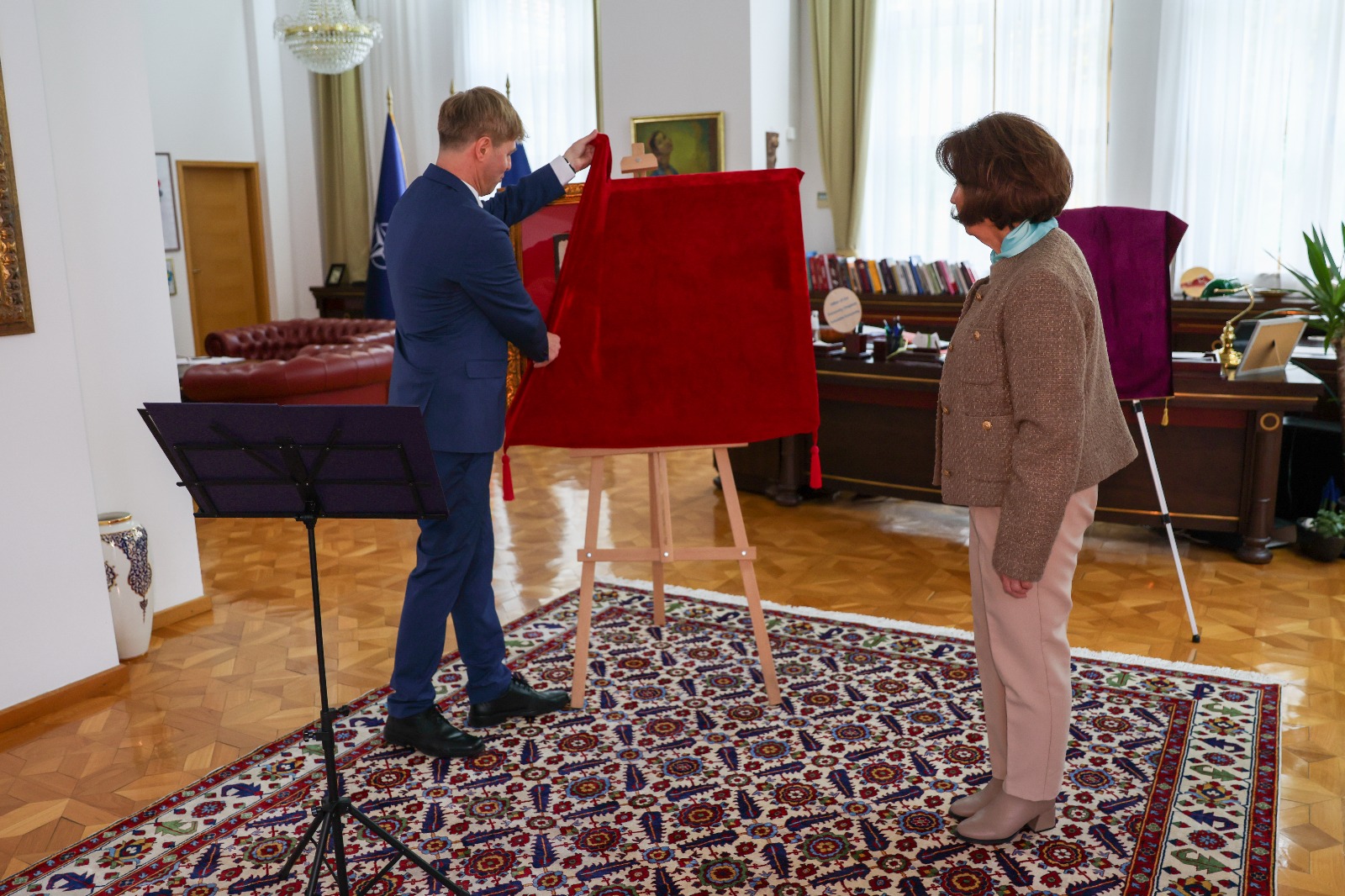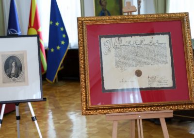 Претседателката Гордана Сиљановска-Давкова денеска го прими професорот Георги Гоце Дуртаноски, кој ѝ ја врачи првата копија од Привилегијата дадена на Македонците од Светиот римски цар Леополд Први Хабзбуршки во 1690 година во Виена.