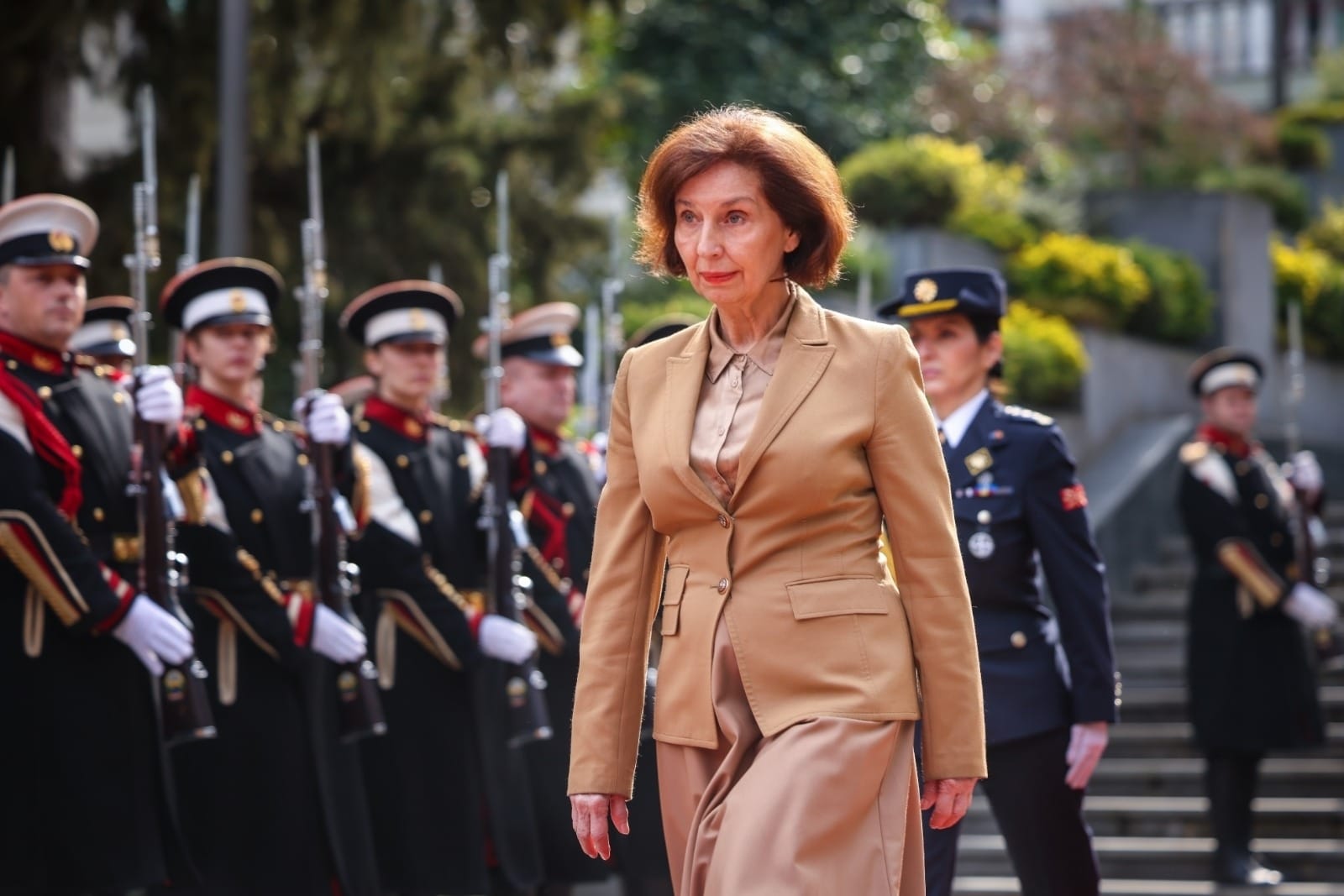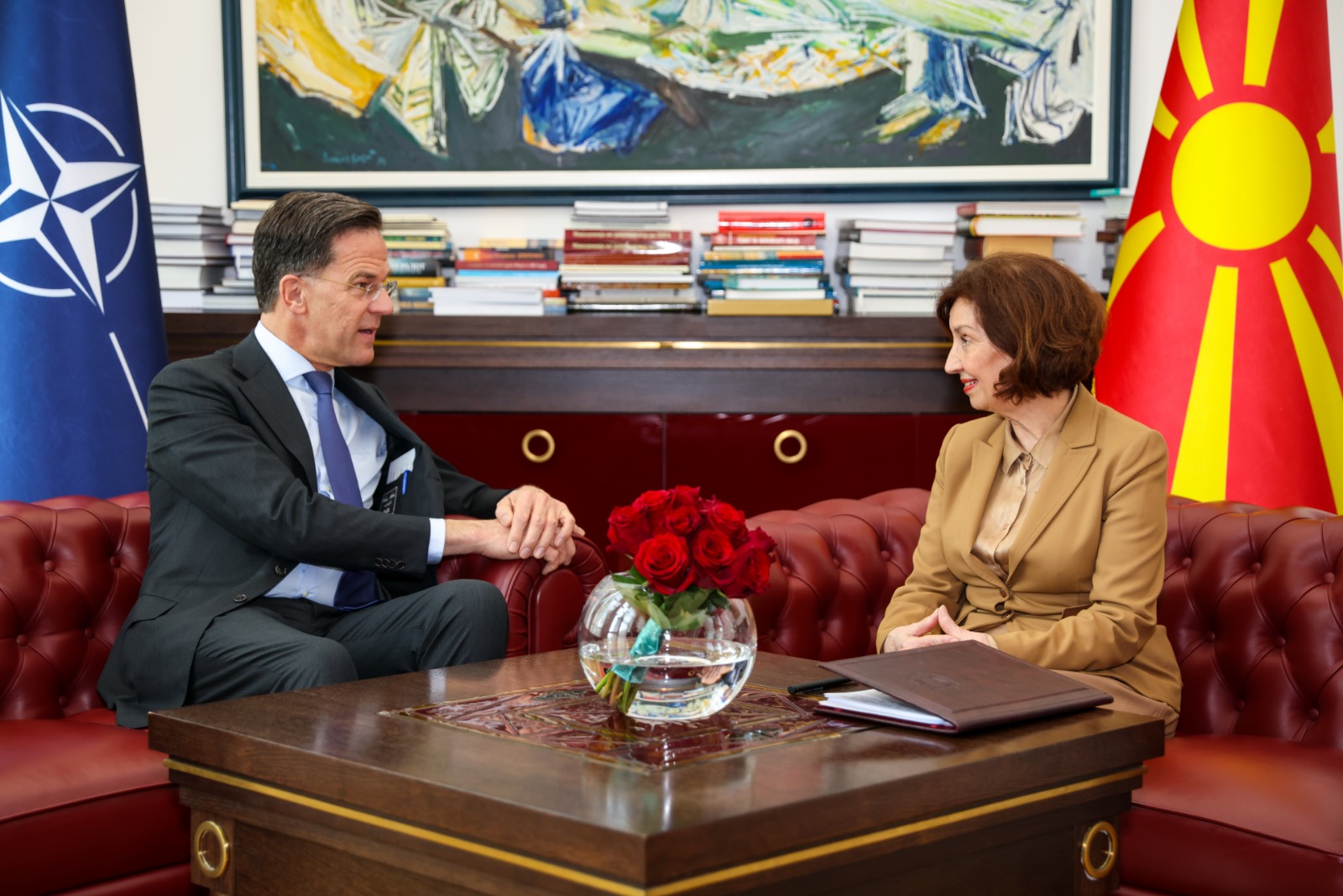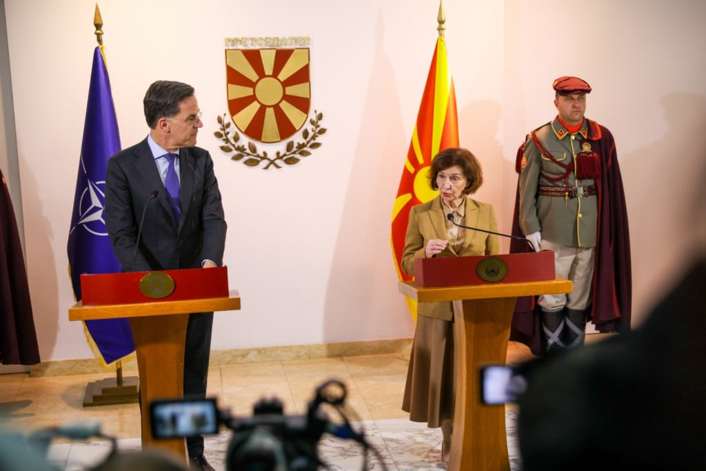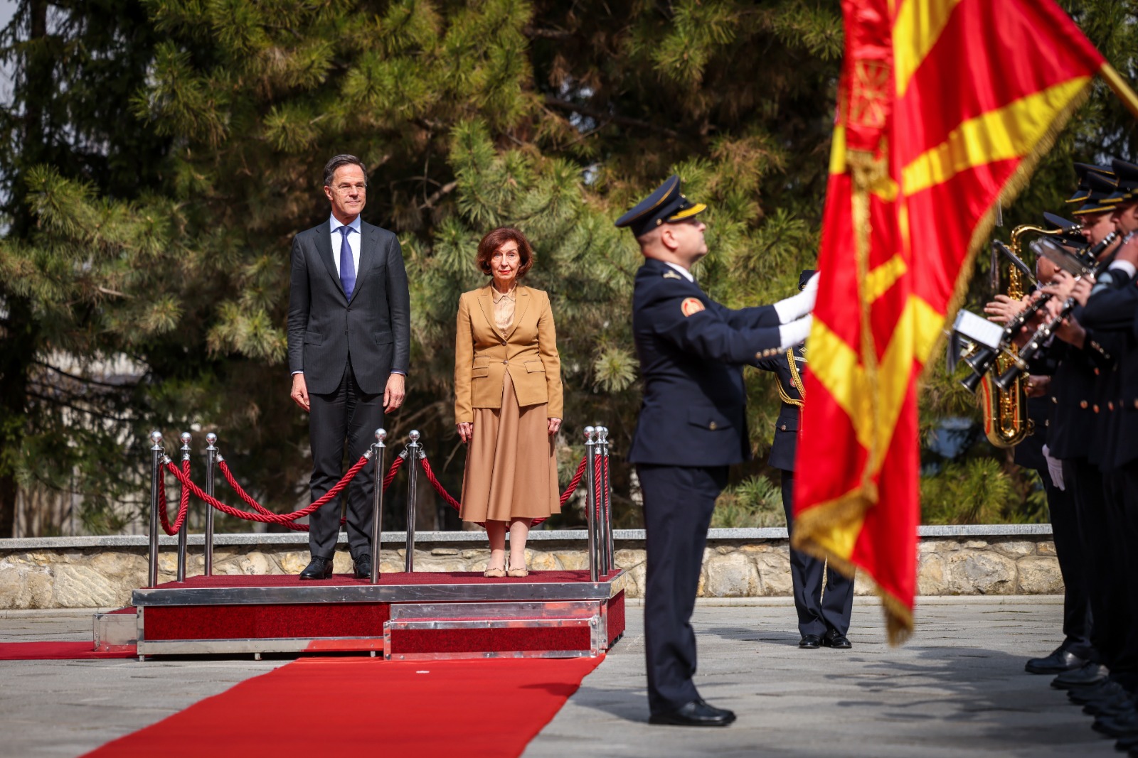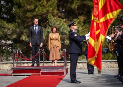 На официјална церемонија со највисоки државни и воени почести претседателката Гордана Сиљановска-Давкова го пречека генералниот секретар на НАТО, Марк Руте, кој престојува во прва официјална посета.