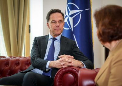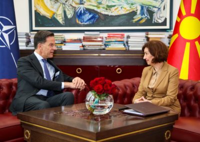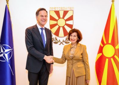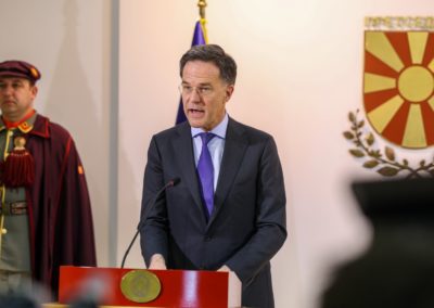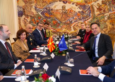 Се соочуваме со глобална неизвесност, со геополитички тензии, со војна на европско тло, со сајбер закани, со хибридни закани, со закани од ширење на дезинформации и затоа мислам дека посетата на генералниот секретар Руте, којашто за жал коинцидира со време на сериозни безбедносни предизвици (мислам на галопирачките воени дејствија на Блискиот Исток и Персискиот залив) за мене е јасна потврда за важноста на сојузничката солидарност и на заедничката одговорност.