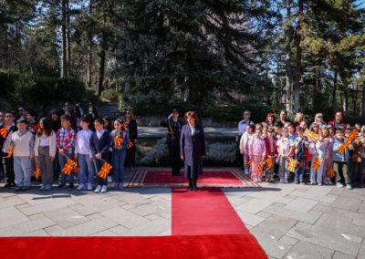 Младите посетители со внимание ја проследија церемонијата што традиционално се одржува секој втор петок во месецот, а ја реализира Баталјонот за почести при македонската армија, како израз на почит кон знамето и државата.