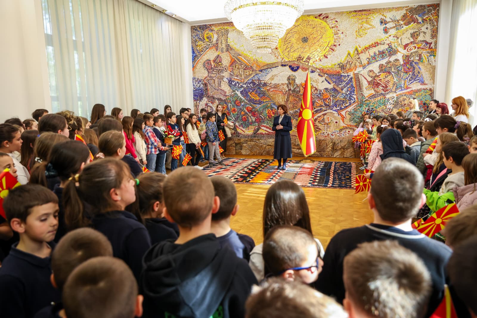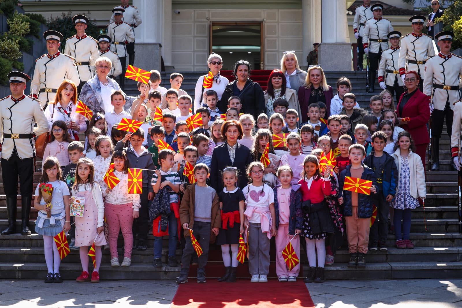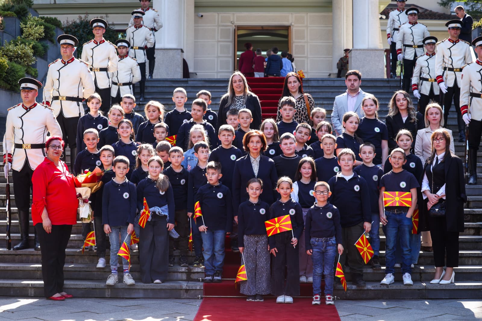 Во Кабинетот на претседателката Гордана Сиљановска-Давкова денеска се одржа церемонија на свечено менување на државното знаме, на којашто присуствуваа повеќе од 170 ученици од скопските основни училишта „Христијан Тодоровски-Карпош “, „Петар Поп Арсов“ и од „Гоце Делчев“, придружувани од своите наставници.