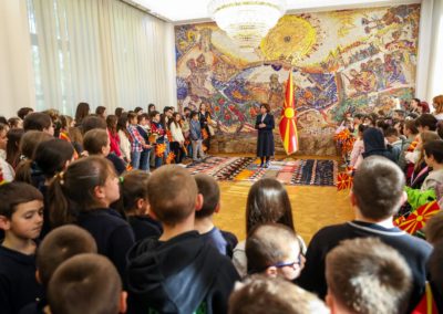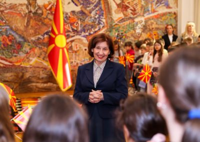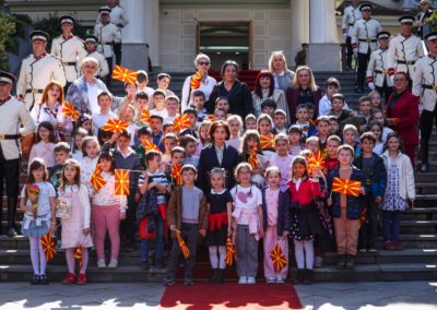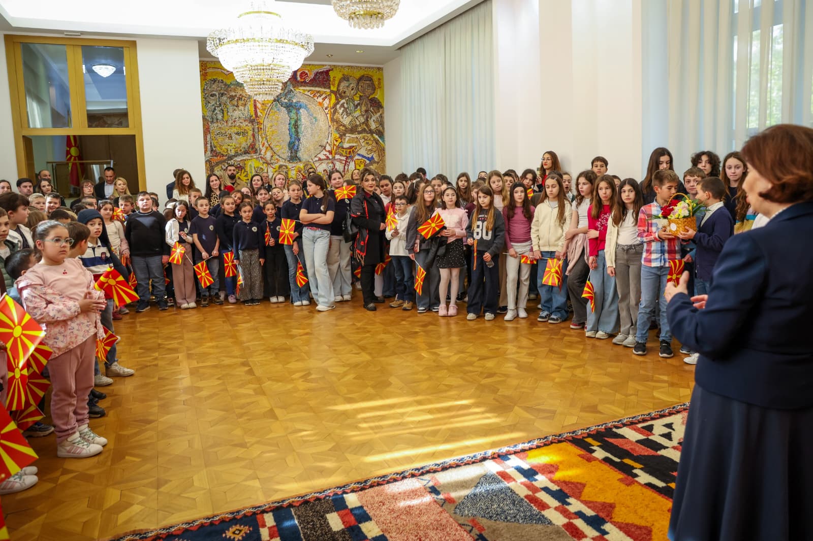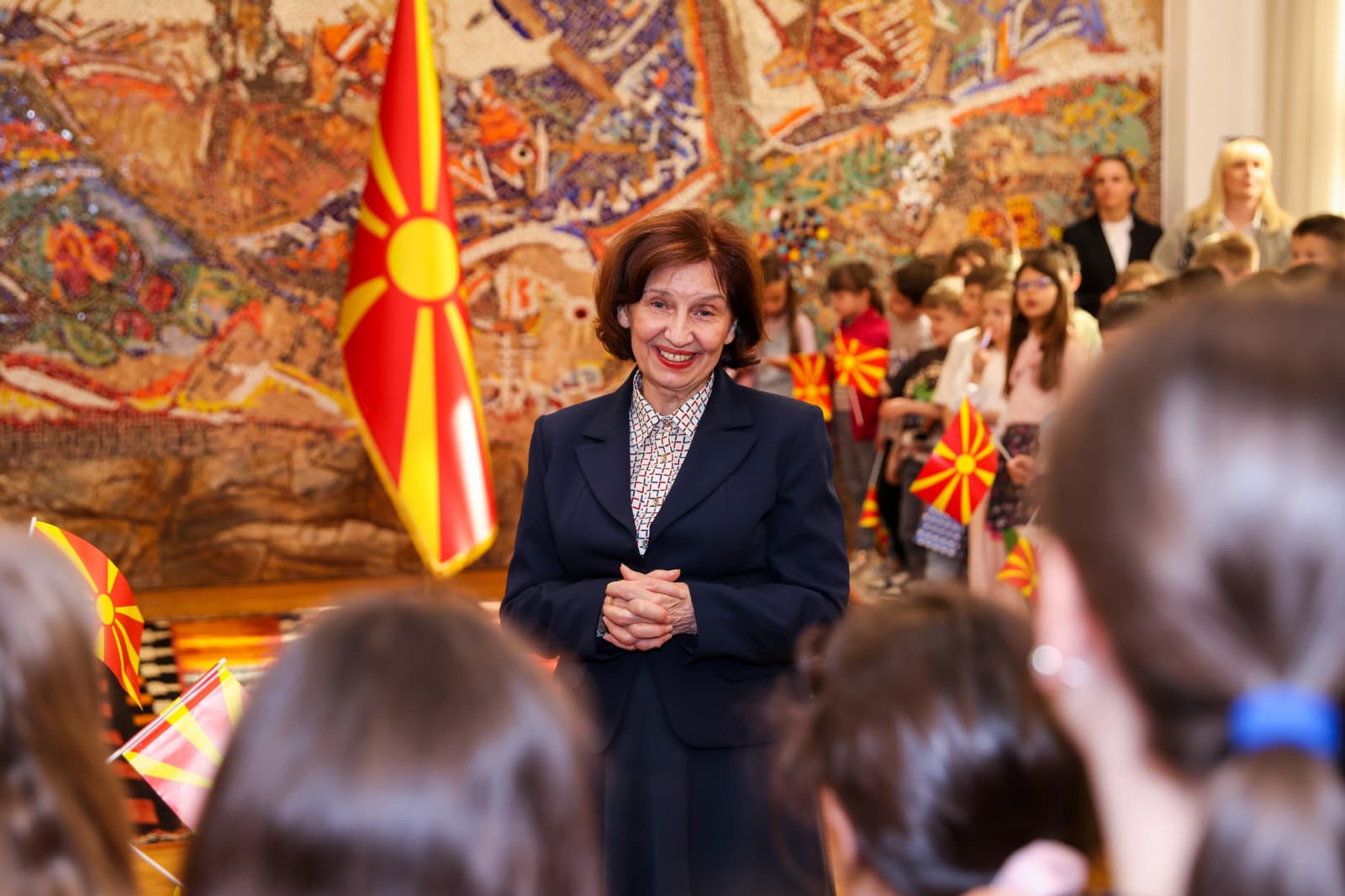 Во Кабинетот на претседателката Гордана Сиљановска-Давкова денеска се одржа церемонија на свечено менување на државното знаме, на којашто присуствуваа повеќе од 170 ученици од скопските основни училишта „Христијан Тодоровски-Карпош “, „Петар Поп Арсов“ и од „Гоце Делчев“, придружувани од своите наставници.
