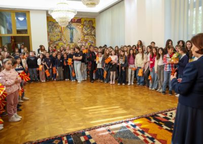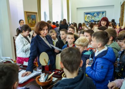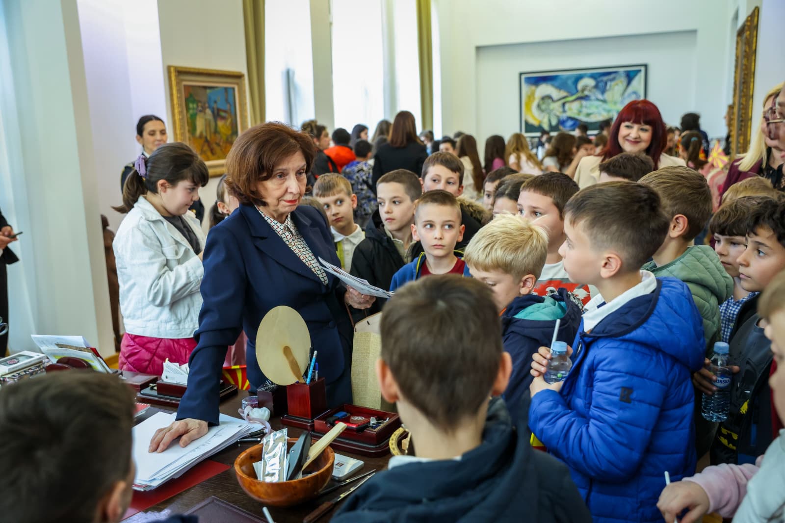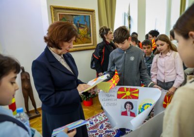 По свечениот чин, гостите ги разгледаа просториите на Кабинетот и во непосреден разговор со Сиљановска-Давкова, со голема љубопитност ѝ поставија бројни прашања со коишто покажаа завидна зрелост: за секојдневните предизвици, за активностите коишто ѝ недостасуваат поради зафатеноста со претседателската функција, за омилените активности во детството, за школувањето и професијата, но и за уметничките дела коишто го красат Кабинетот.